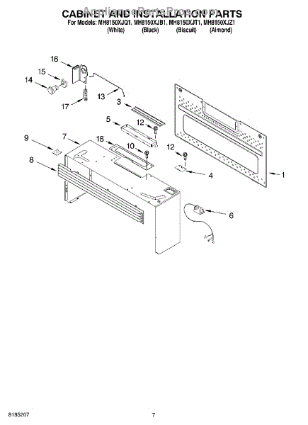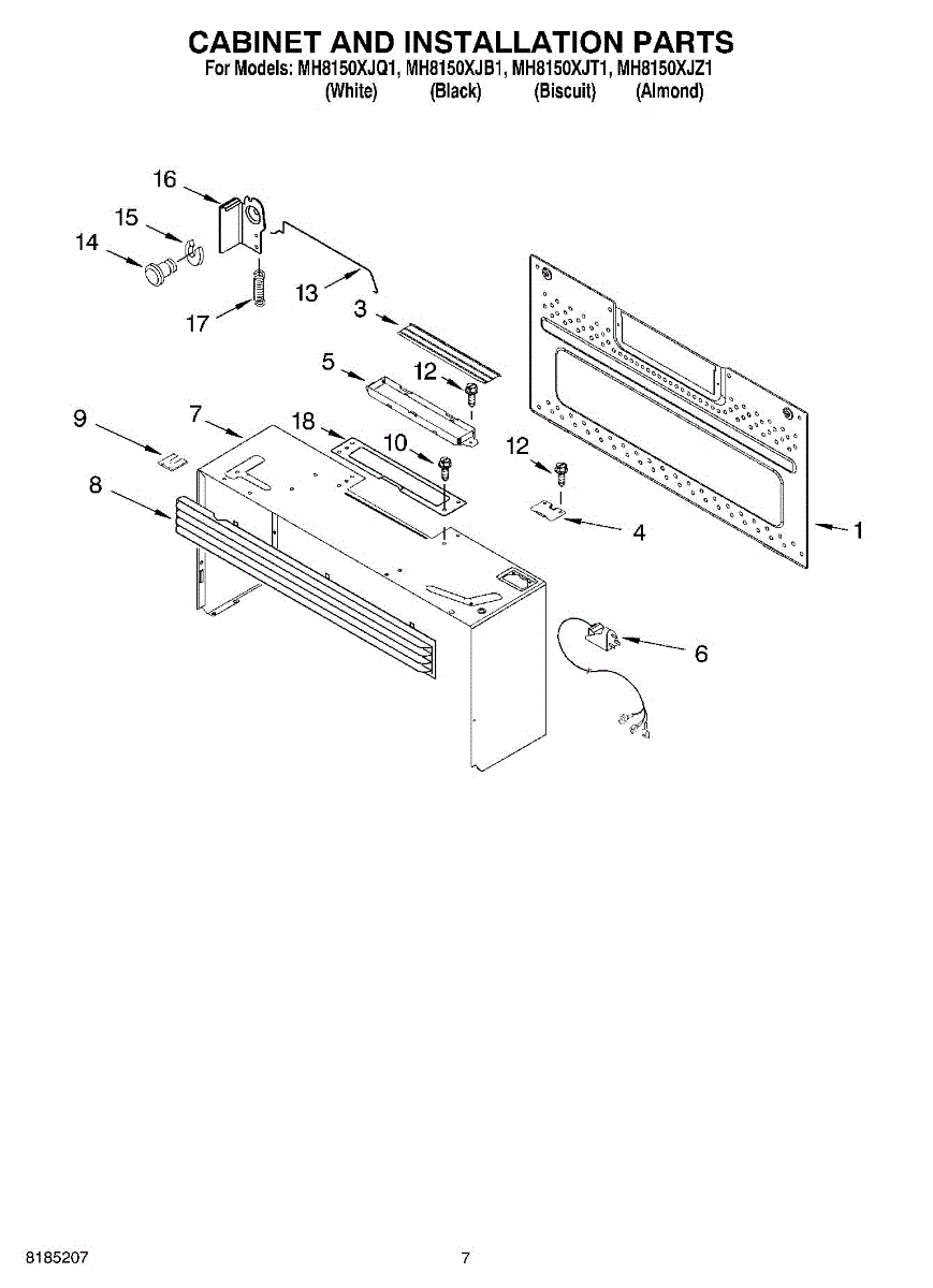 Parts for Whirlpool MH8150XJQ1: 06 - Cabinet And Installation Parts