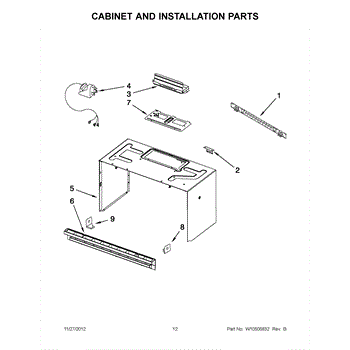 The Upper Cabinet Template is an OEM part for Whirlpool microwaves. This template is used during the installation of the microwave to ensure correct placement and alignment within the upper cabinet, providing guidance for drilling holes and securing the microwave in place.