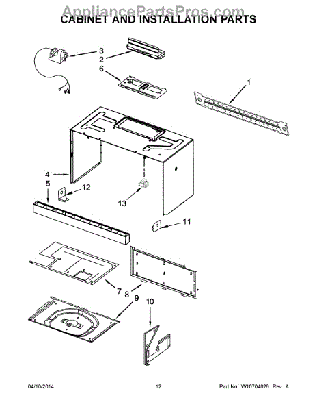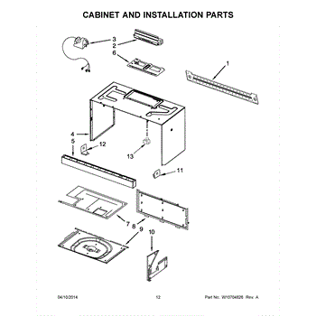 The Upper Cabinet Template is an OEM part for Whirlpool microwaves. This template is used during the installation of the microwave to ensure correct placement and alignment within the upper cabinet, providing guidance for drilling holes and securing the microwave in place.
