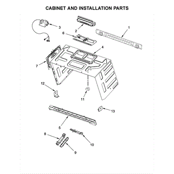The Upper Cabinet Template is an OEM part for Whirlpool microwaves. This template is used during the installation of the microwave to ensure correct placement and alignment within the upper cabinet, providing guidance for drilling holes and securing the microwave in place.