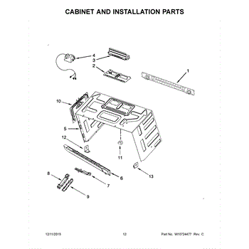 The Upper Cabinet Template is an OEM part for Whirlpool microwaves. This template is used during the installation of the microwave to ensure correct placement and alignment within the upper cabinet, providing guidance for drilling holes and securing the microwave in place.