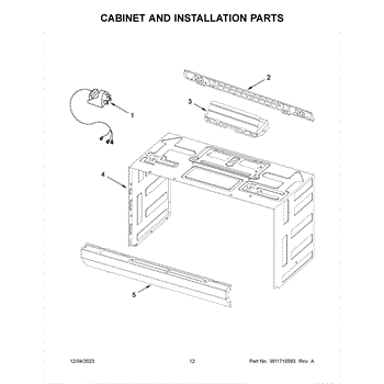 The Upper Cabinet Template is an OEM part for Whirlpool microwaves. This template is used during the installation of the microwave to ensure correct placement and alignment within the upper cabinet, providing guidance for drilling holes and securing the microwave in place.