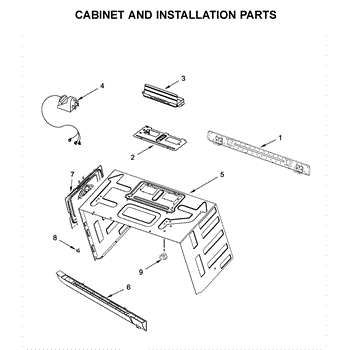 The Upper Cabinet Template is an OEM part for Whirlpool microwaves. This template is used during the installation of the microwave to ensure correct placement and alignment within the upper cabinet, providing guidance for drilling holes and securing the microwave in place.