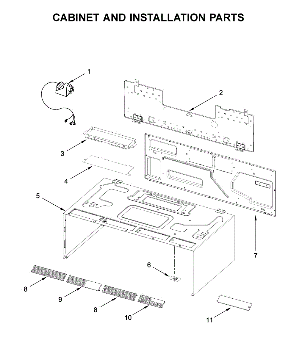 Wall mounting plate assembly for over-the-range microwaves. Secures microwave to wall brackets during installation. Replace if warped, cracked, or missing.