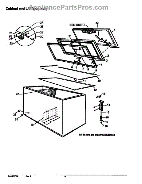 Parts for Amana C150DW/P1125105WW: Cabinet And Lid Assembly Parts