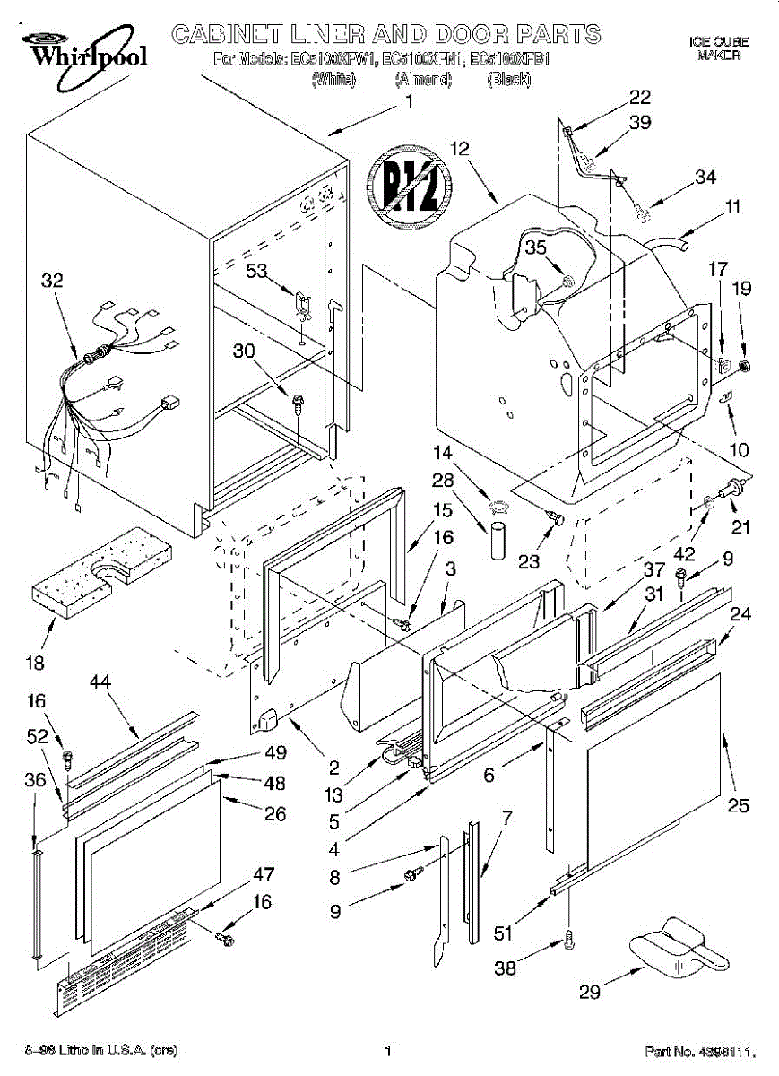 Parts for Whirlpool EC5100XFW1: 01 - Cabinet Liner And Door Parts