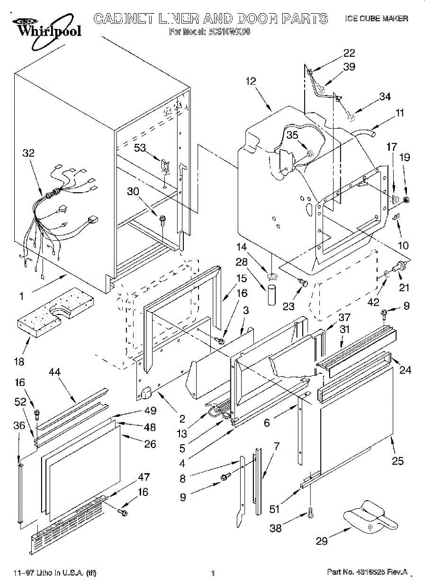 Parts for Whirlpool EC510WXD0: 01 - Cabinet Liner And Door, Lit / Optional Parts