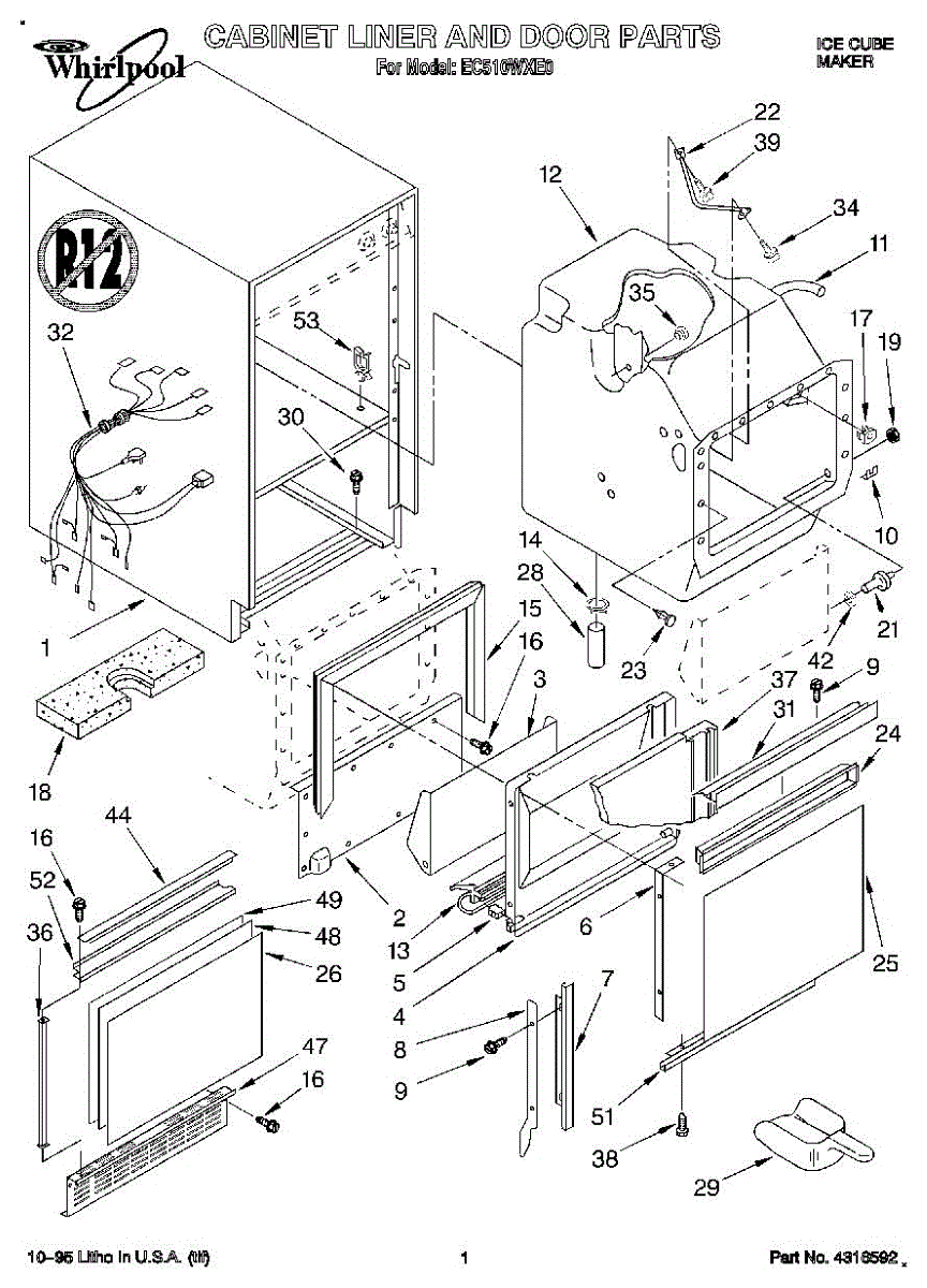 Parts for Whirlpool EC510WXE0: 01 - Cabinet Liner And Door Parts