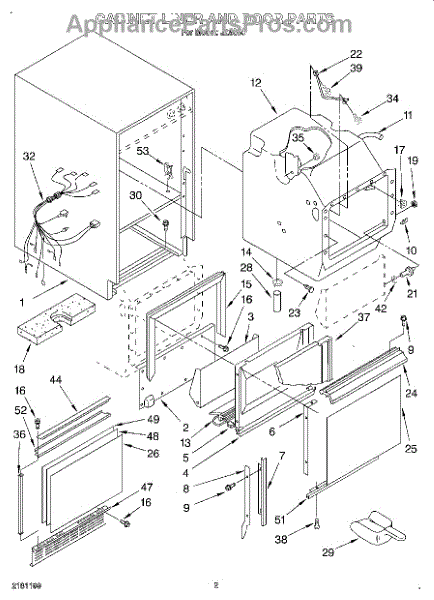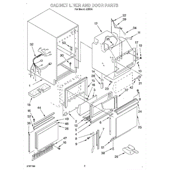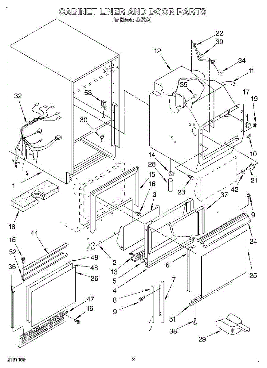 Parts for Whirlpool JZ5064: 02 - Cabinet Liner And Door, Lit / Optiona Parts