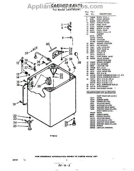 Parts for Whirlpool LAA7800W1: 02 - Cabinet , Lit / Optional Continued Parts