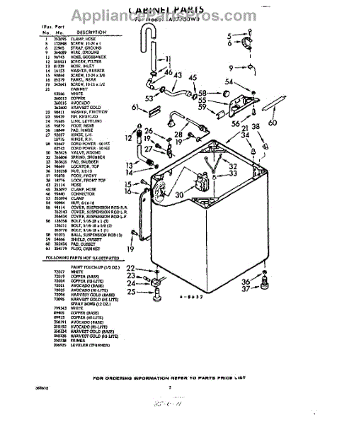Parts for Whirlpool LAB7750W0: 02 - Cabinet , Lit / Optional Continued Parts