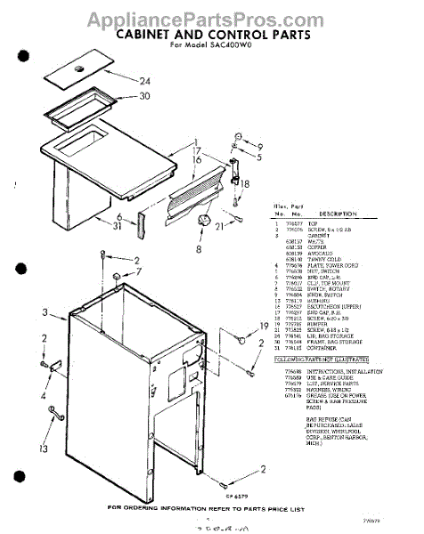 Parts for Whirlpool SAC400W0: 05 - Cabinet , Lit / Optional Parts