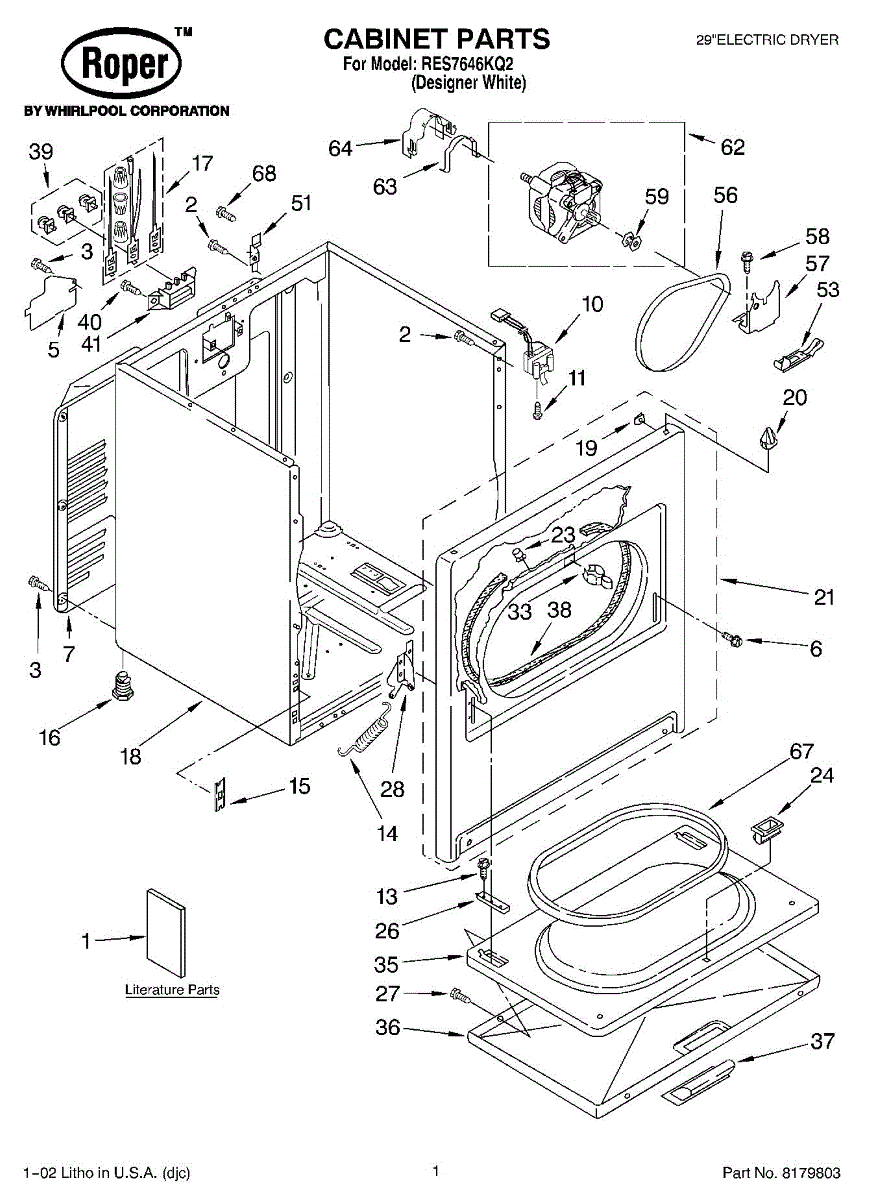 Fits all Whirlpool-made dryers (Whirlpool, Kenmore with prefix 110, Roper, KitchenAid, and Estate). Matching belt 341241 and rear support rollers 349241T. Whirlpool dryer repair manual 677818L.