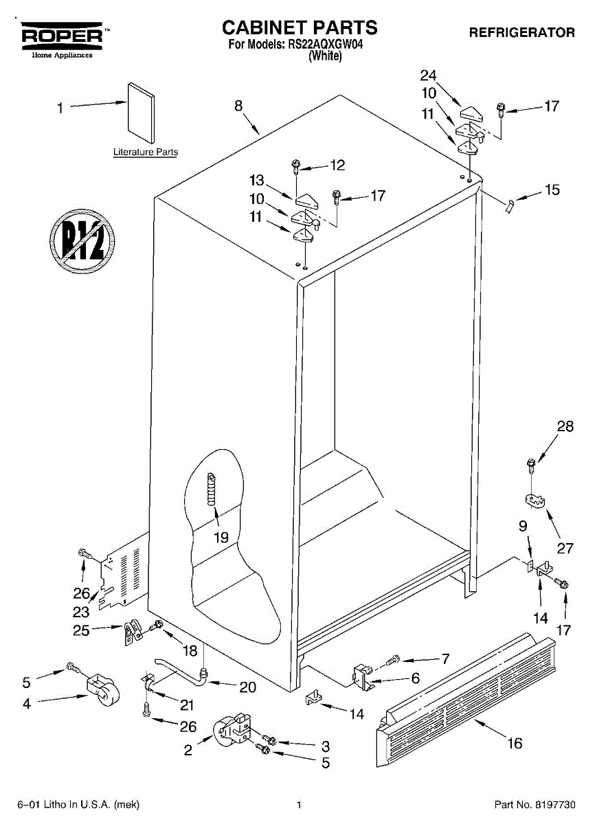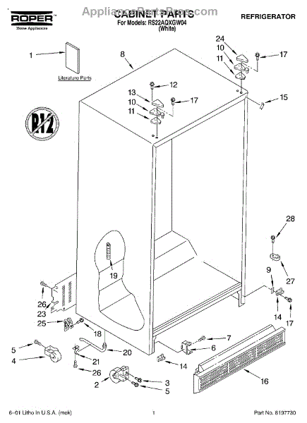 Parts for Roper RS22AQXGW04: 01 - Cabinet, Literature Parts