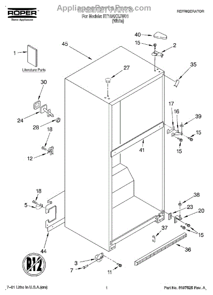 The Hinge Washer is an OEM replacement part for Whirlpool refrigerators. This small washer plays a supports the refrigerator door hinge assembly. Center hinge plastic washer. Causes of a bad hinge washer are generally normal wear and tear from extensive use. As the washer absorbs pressure each time the door is opened or closed, it can gradually deteriorate or crack. Physical damage is also possible if the door is accidentally struck or slammed. Symptoms of a worn or damaged hinge washer include: