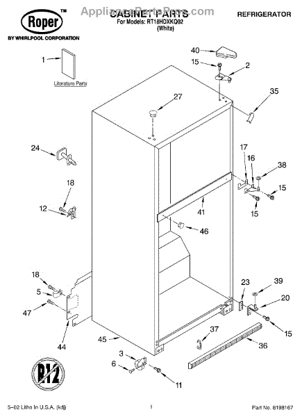 The Hinge Washer is an OEM replacement part for Whirlpool refrigerators. This small washer plays a supports the refrigerator door hinge assembly. Center hinge plastic washer. Causes of a bad hinge washer are generally normal wear and tear from extensive use. As the washer absorbs pressure each time the door is opened or closed, it can gradually deteriorate or crack. Physical damage is also possible if the door is accidentally struck or slammed. Symptoms of a worn or damaged hinge washer include: