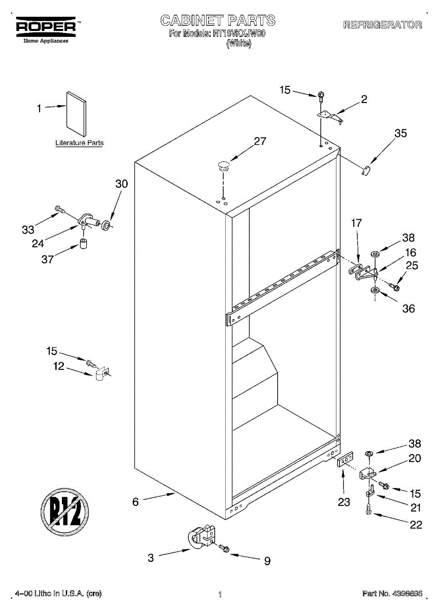 Due to manufacturer changes, if D shaft hinge pin is needed use part number WP2325483.
