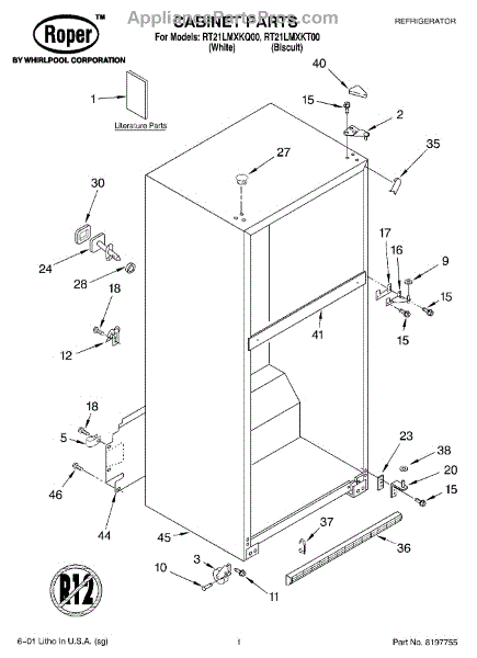The Hinge Washer is an OEM replacement part for Whirlpool refrigerators. This small washer plays a supports the refrigerator door hinge assembly. Center hinge plastic washer. Causes of a bad hinge washer are generally normal wear and tear from extensive use. As the washer absorbs pressure each time the door is opened or closed, it can gradually deteriorate or crack. Physical damage is also possible if the door is accidentally struck or slammed. Symptoms of a worn or damaged hinge washer include: