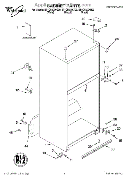 Repair manual for refrigerators and freezers made by Whirlpool. Covered brands include Whirlpool, Sears, Kenmore, Kitchen Aid, Roper, and Estate. Easy to follow photographs and step-by-step repair procedures.
