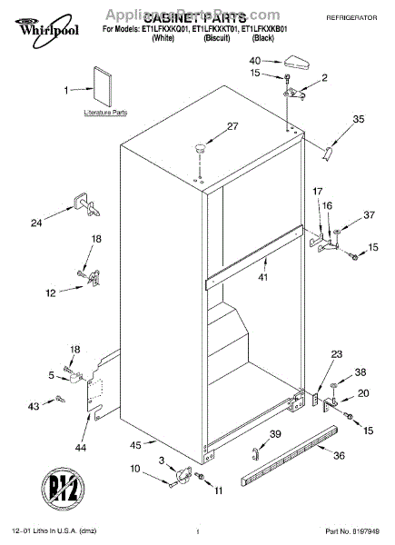 Repair manual for refrigerators and freezers made by Whirlpool. Covered brands include Whirlpool, Sears, Kenmore, Kitchen Aid, Roper, and Estate. Easy to follow photographs and step-by-step repair procedures.