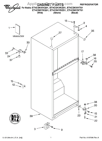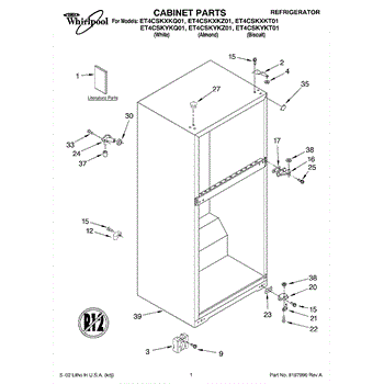 Repair manual for refrigerators and freezers made by Whirlpool. Covered brands include Whirlpool, Sears, Kenmore, Kitchen Aid, Roper, and Estate. Easy to follow photographs and step-by-step repair procedures.