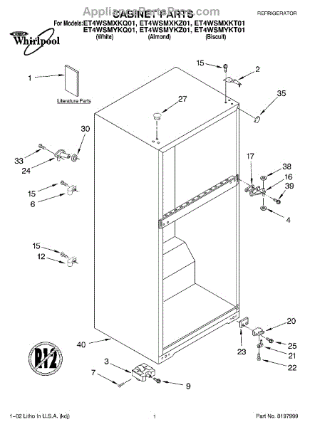 Repair manual for refrigerators and freezers made by Whirlpool. Covered brands include Whirlpool, Sears, Kenmore, Kitchen Aid, Roper, and Estate. Easy to follow photographs and step-by-step repair procedures.