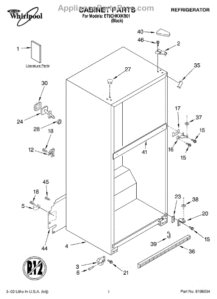 Repair manual for refrigerators and freezers made by Whirlpool. Covered brands include Whirlpool, Sears, Kenmore, Kitchen Aid, Roper, and Estate. Easy to follow photographs and step-by-step repair procedures.