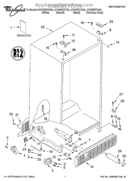 Rear access cover panel for refrigerators. Shields compressor and electrical components from dust and debris. Replace if cracked, damaged, or worn.