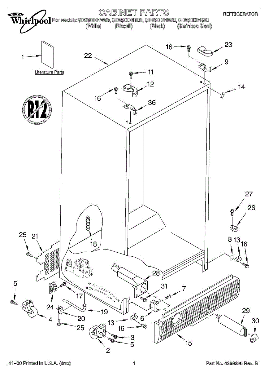 The Roller Assembly is an OEM part for Whirlpool refrigerators. This assembly includes the rollers that support and allow the refrigerator to be moved easily for cleaning or maintenance. Proper functioning rollers ensure smooth movement and stability of the appliance.