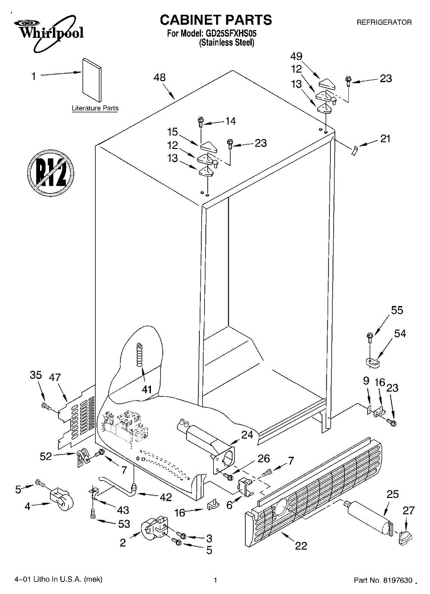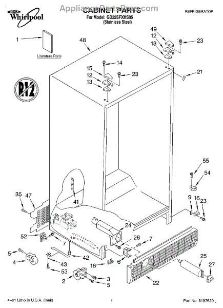Parts for Whirlpool GD25SFXHS05: 01 - Cabinet, Literature Parts