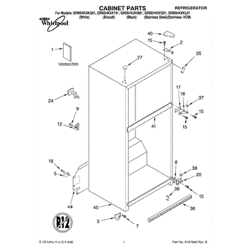 Parts for Whirlpool GR9SHKXKL01: 01 - Cabinet, Literature Parts