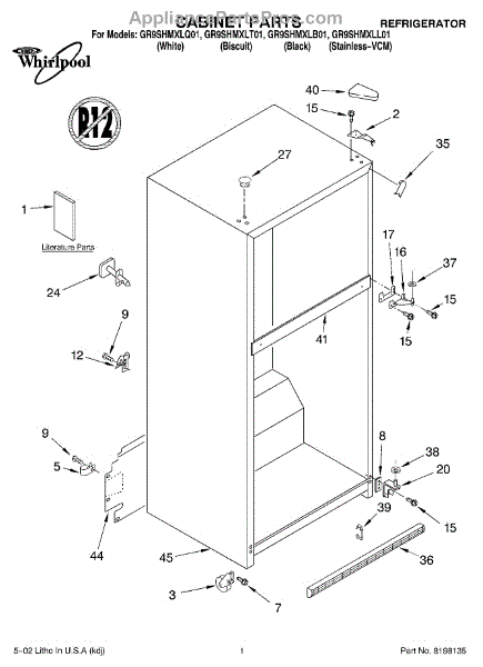The Hinge Washer is an OEM replacement part for Whirlpool refrigerators. This small washer plays a supports the refrigerator door hinge assembly. Center hinge plastic washer. Causes of a bad hinge washer are generally normal wear and tear from extensive use. As the washer absorbs pressure each time the door is opened or closed, it can gradually deteriorate or crack. Physical damage is also possible if the door is accidentally struck or slammed. Symptoms of a worn or damaged hinge washer include:
