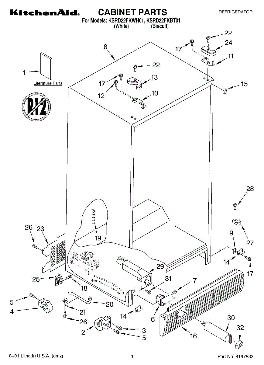 Parts for Kitchenaid KSRD22FKBT01: 01 - Cabinet, Literature Parts