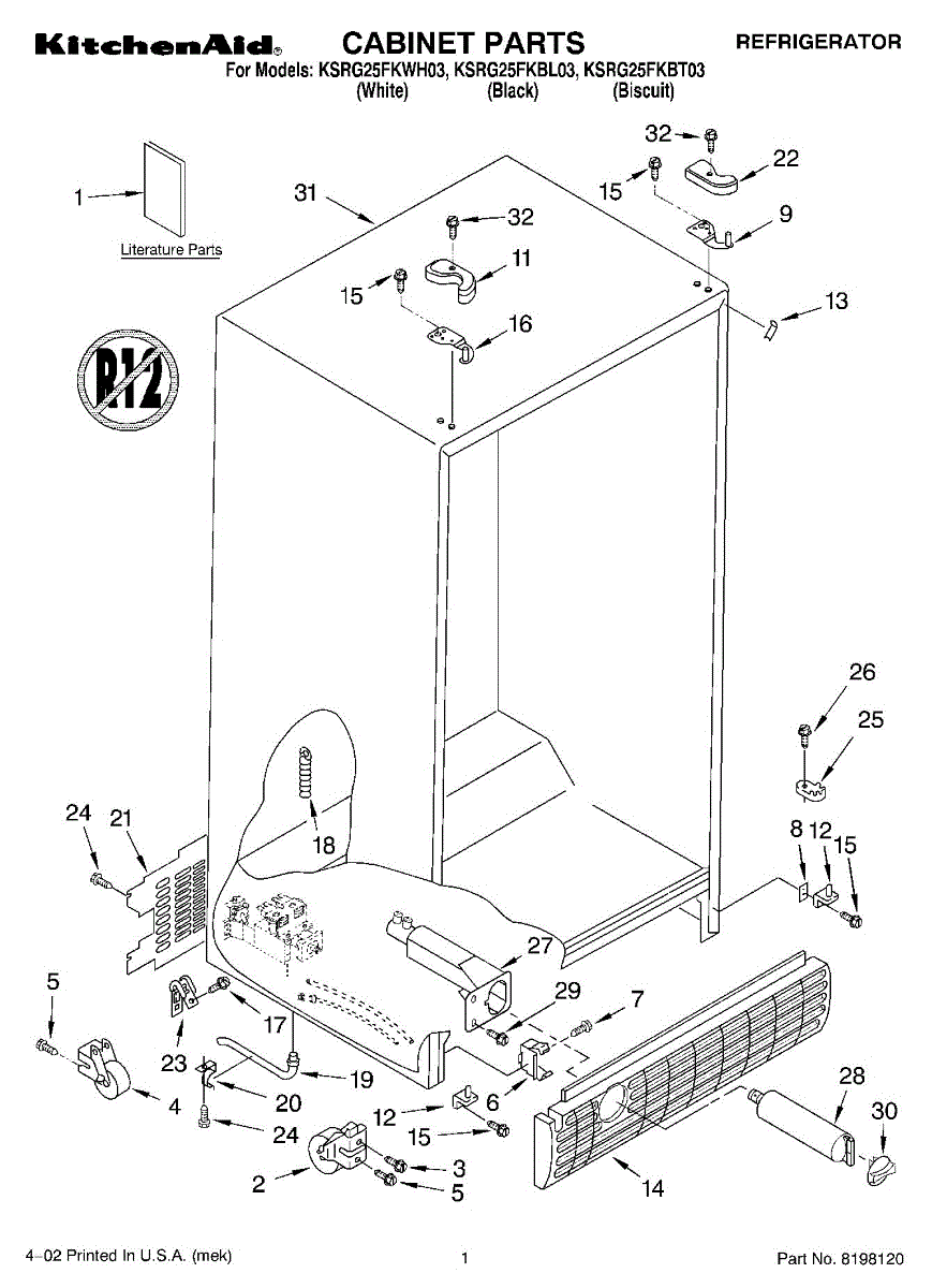 This cabinet roller assembly supports the refrigerator at the base and lets you roll the unit forward for cleaning or service. Replace a cracked or seized roller to restore smooth movement and a stable, level stance. What it does: