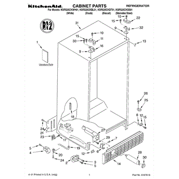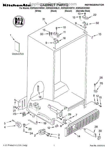 Parts for Kitchenaid KSRS25CKWH01: 01 - Cabinet, Literature Parts