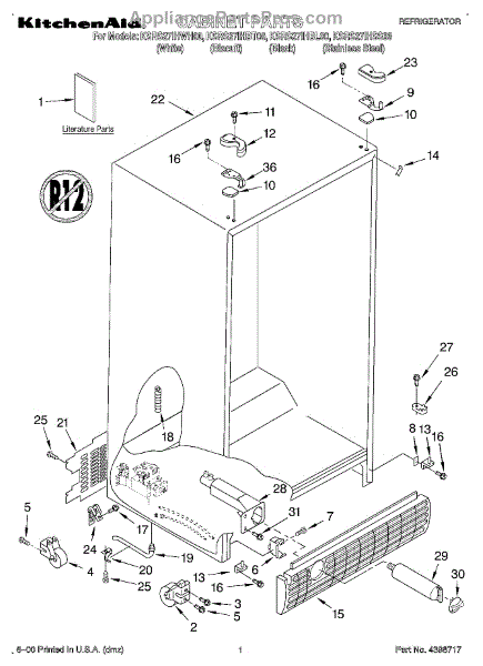 Parts for Kitchenaid KSRS27IHBL00: 01 - Cabinet, Literature Parts