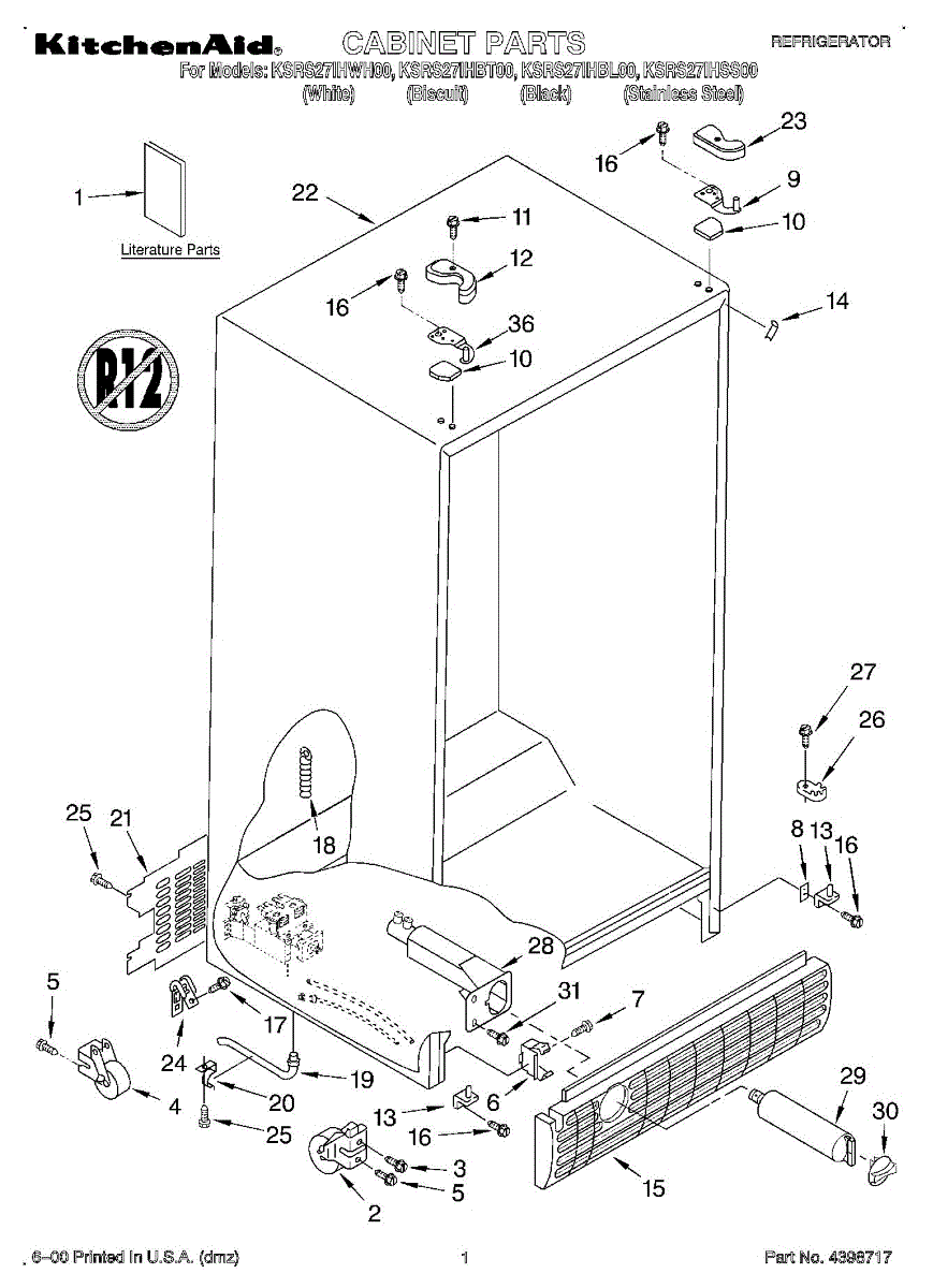Supports your refrigerator at the base and lets you roll it forward for cleaning. Replace this roller assembly if cracked, broken, or seized to restore smooth movement.