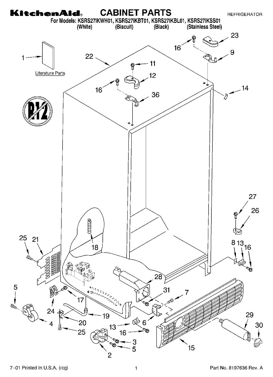 This cabinet roller assembly supports the refrigerator at the base and lets you roll the unit forward for cleaning or service. Replace a cracked or seized roller to restore smooth movement and a stable, level stance. What it does: