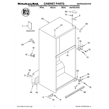 Parts for Kitchenaid KTRC22EKBL00: 01 - Cabinet, Literature Parts