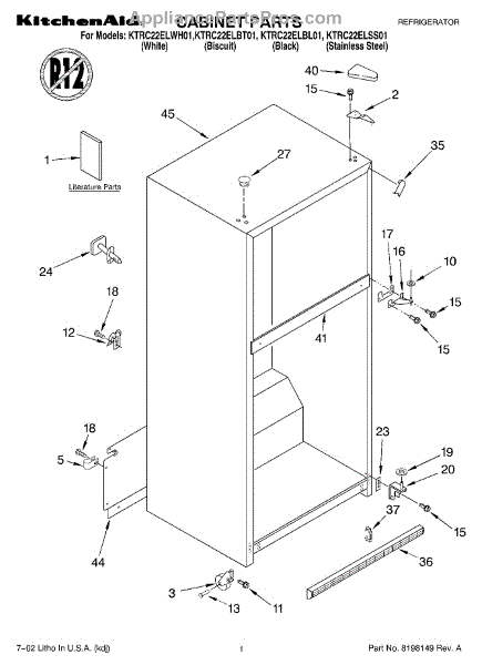 Parts for Kitchenaid KTRC22ELWH01: 01 - Cabinet, Literature Parts
