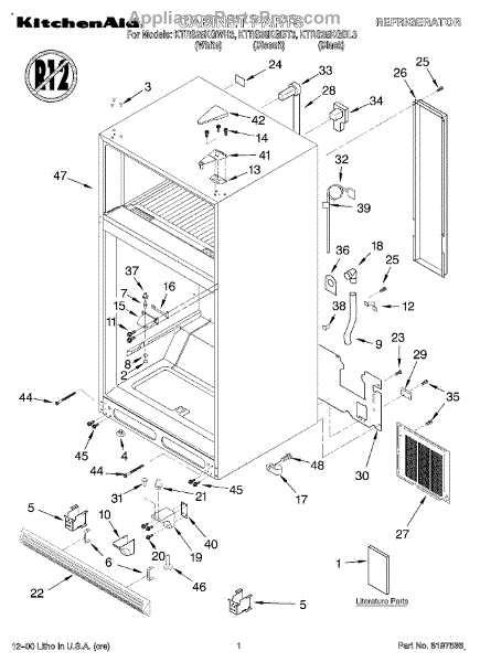 Hex washer head screw secures panels, brackets, and components in your refrigerator. Replace worn, stripped, or missing screws for proper alignment.
