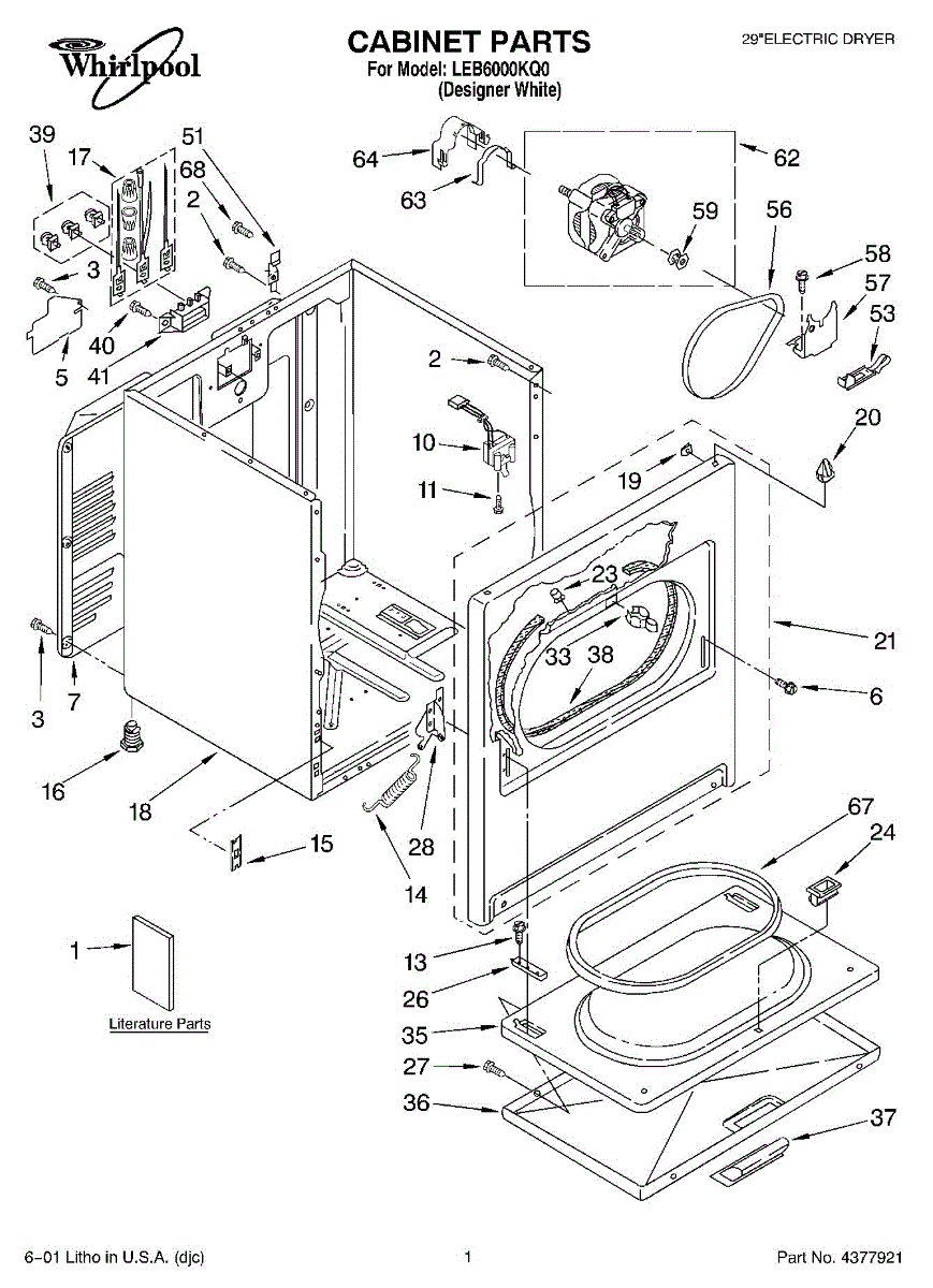 Fits all Whirlpool-made dryers (Whirlpool, Kenmore with prefix 110, Roper, KitchenAid, and Estate). Matching belt 341241 and rear support rollers 349241T. Whirlpool dryer repair manual 677818L.