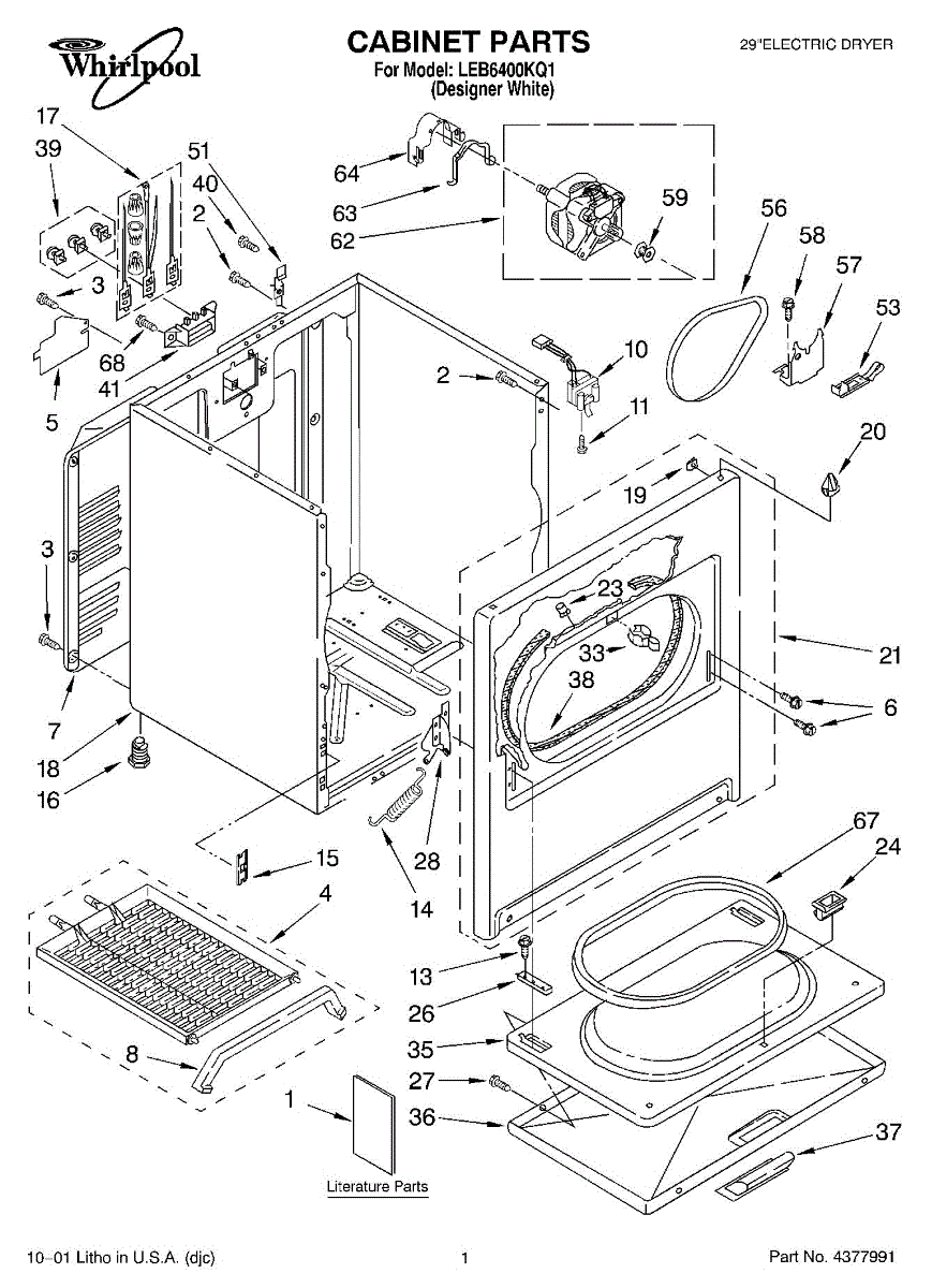 Fits all Whirlpool-made dryers (Whirlpool, Kenmore with prefix 110, Roper, KitchenAid, and Estate). Matching belt 341241 and rear support rollers 349241T. Whirlpool dryer repair manual 677818L.