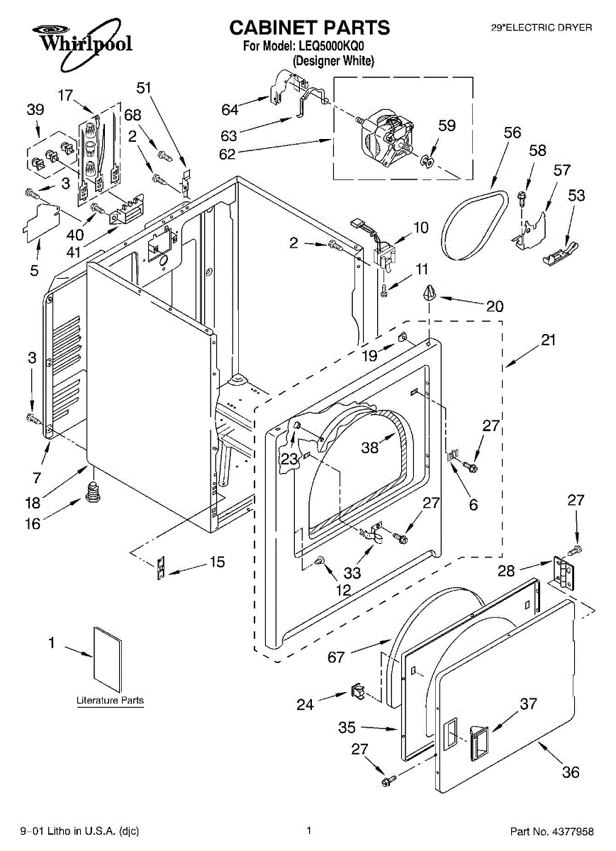 Fits all Whirlpool-made dryers (Whirlpool, Kenmore with prefix 110, Roper, KitchenAid, and Estate). Matching belt 341241 and rear support rollers 349241T. Whirlpool dryer repair manual 677818L.