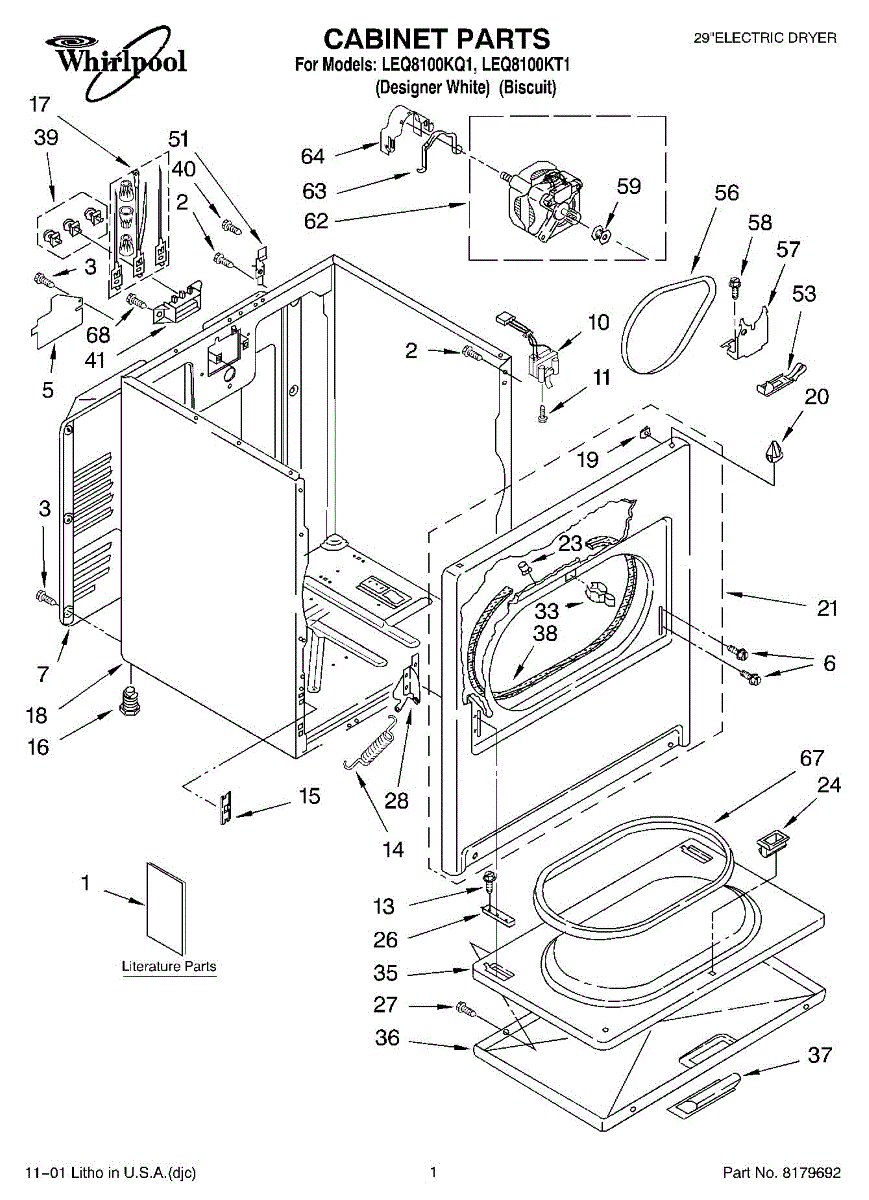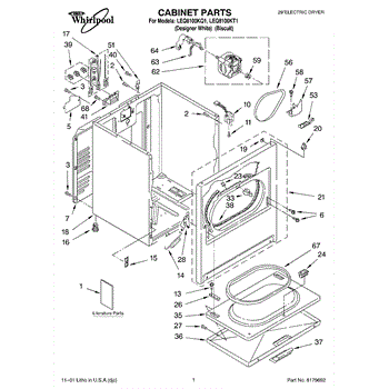 Dryer outer cabinet that houses internal components. Replace if your cabinet is rusted, dented, cracked, or damaged, compromising structural integrity.