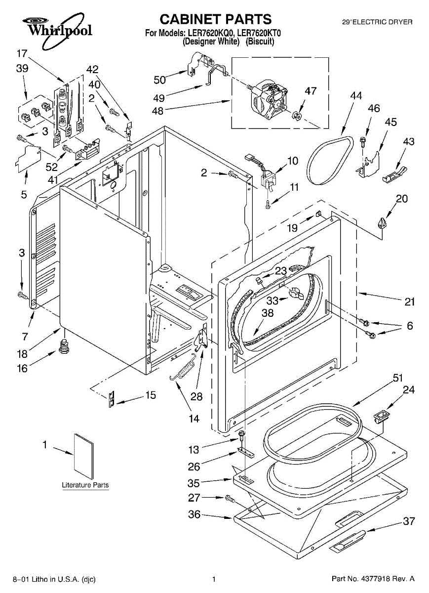 Fits all Whirlpool-made dryers (Whirlpool, Kenmore with prefix 110, Roper, KitchenAid, and Estate). Matching belt 341241 and rear support rollers 349241T. Whirlpool dryer repair manual 677818L.