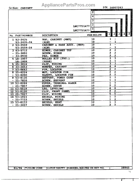 Parts for Maytag LNC7751A71: Cabinet Page 2 Parts