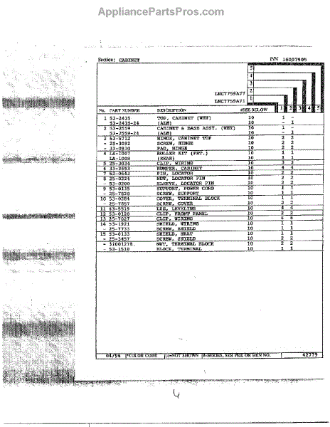 Parts for Maytag LNC7759A71: Cabinet Page 2 Parts