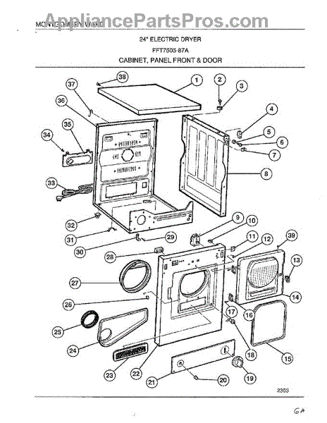 Parts for Frigidaire 7505-87A: Cabinet, Panel Front And Door Parts