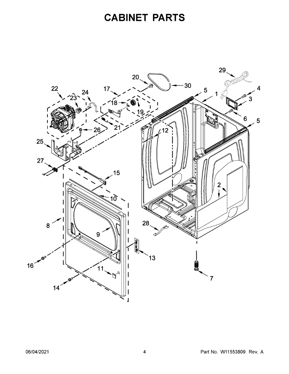 Cabinet housing for dryers. This outer shell encases internal components. Replace if cracked, rusted, dented, or structurally damaged from impact or wear.